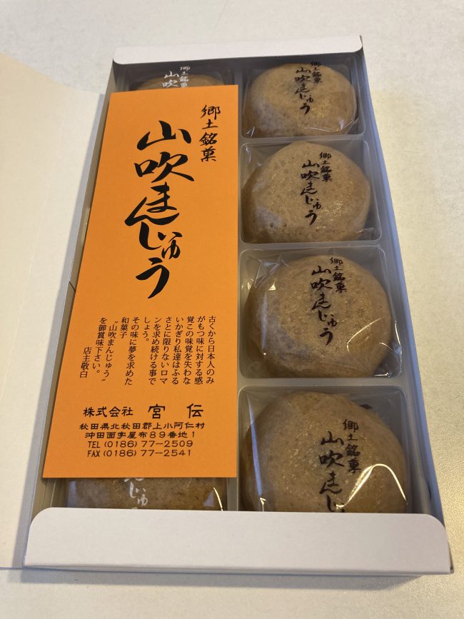小阿仁村で有名な薄皮まんじゅうです。とにかくやわらかい皮と適度な甘さのあんこのバランスが絶妙で、食べた後に口に残る甘さもちょうど良いです。黒餡と白餡の両方があり、甘さも控えめです。