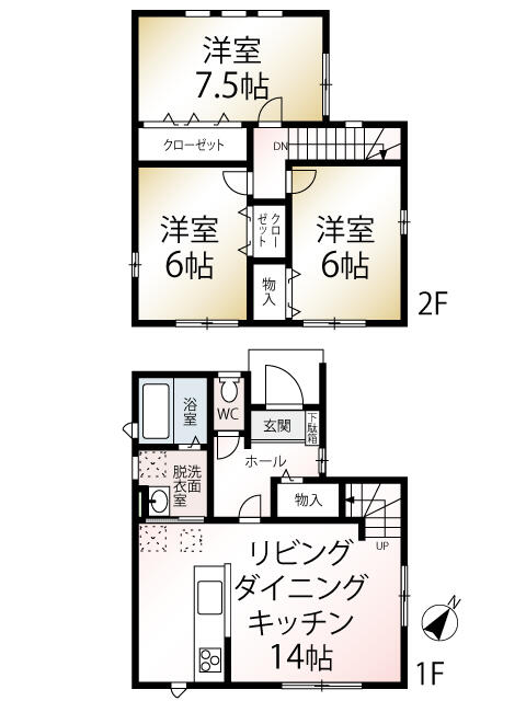 | 間取り | 3LDK | 間取り内訳 | LDK14畳 洋7.5畳 洋6畳 洋6畳 |