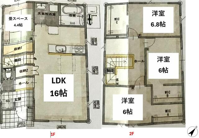 | 間取り | 4LDK | 間取り内訳 | LDK16畳 和4.4畳 洋6畳 洋6畳 洋6.8畳 |