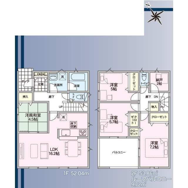 | 設備 | 温水洗浄便座、トイレ2ヶ所、浴室乾燥機、システムキッチン、カウンターキッチン、浄水器、床下収納、洗髪洗面化粧台、電気、都市ガス、上水道、下水道、複層ガラス、モニタ付インターホン、ディンプルキー、ルーフバルコニー、[火災警報器等設置済] | ||