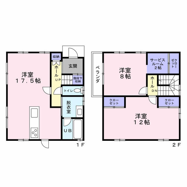 | 間取り | 2SDK | 間取り内訳 | 洋12畳×1室 洋8畳×1室 S2畳×1室 DK17.5畳×1室 |
