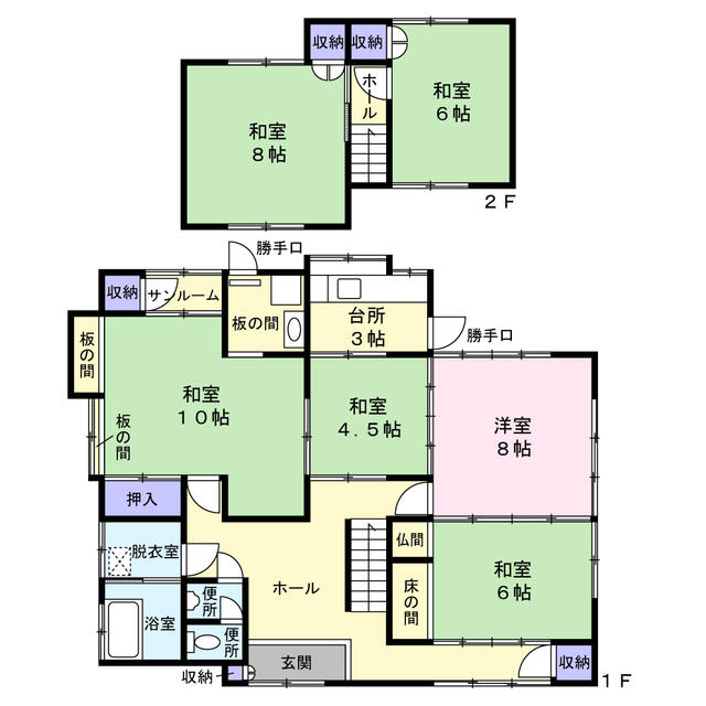 | 間取り | 6DK | 間取り内訳 | 和10畳×1室 和8畳×1室 和6畳×2室 和4.5畳×1室 洋8畳×1室 |