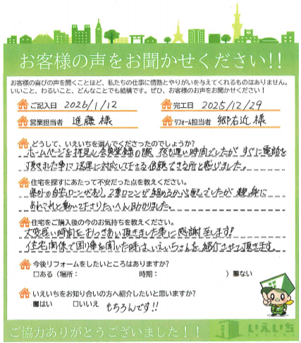 秋田市 H様|お客様の声|秋田中古住宅専門店|秋田市・潟上市の中古リフォームはお任せください。
